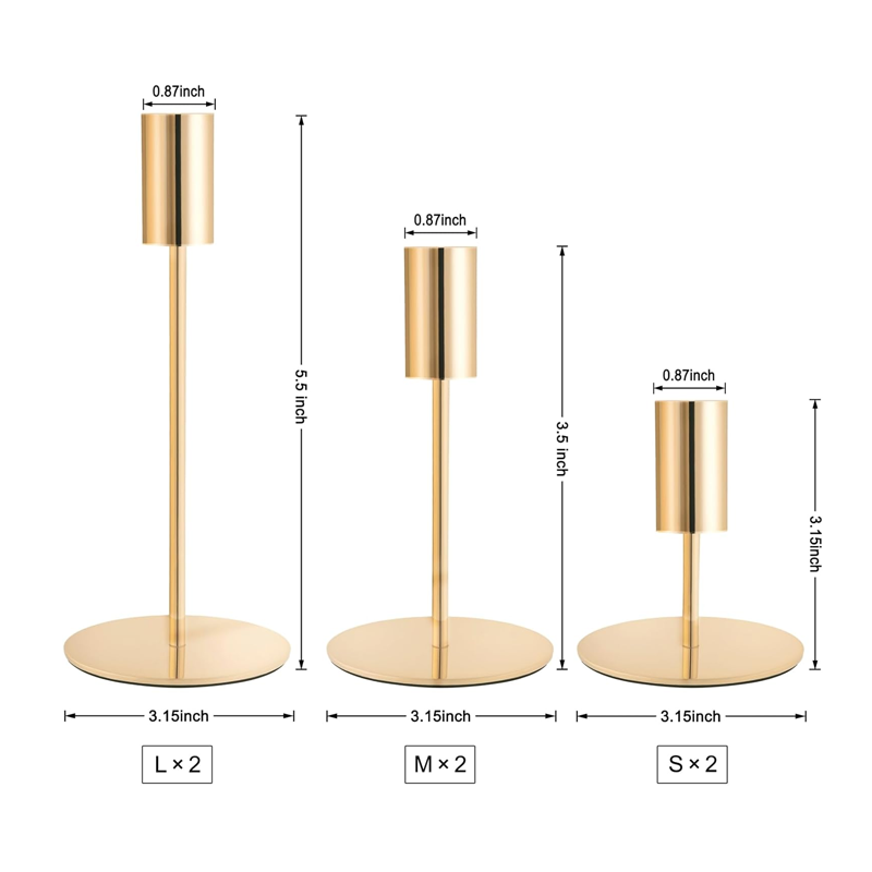 Gold Taper Candle Holders, Set of 6 Taper Candle Holders, Modern Decorative Candle Holders, for Wedding Centerpieces