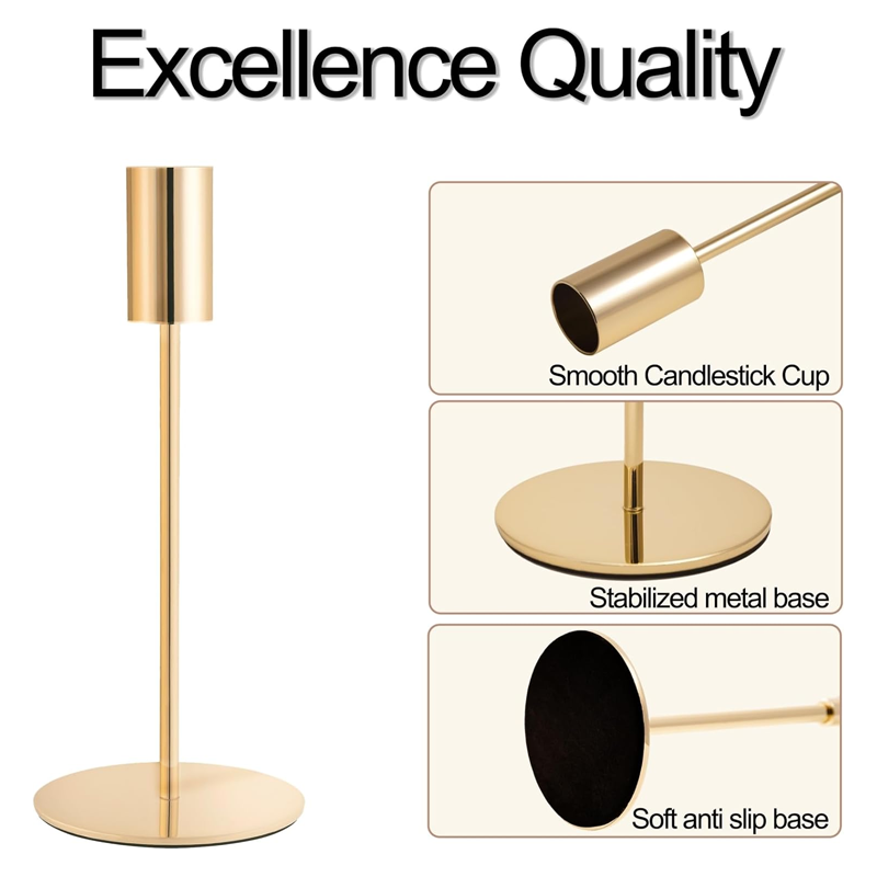 Sturdy Base: The tapered candlesticks are made of metal, making them rust-proof and corrosion-resistant. Each candlestick has a stable round base with a black non-slip pad on the bottom, ensuring stability, preventing scratches and slips, and guaranteeing long-lasting durability.
