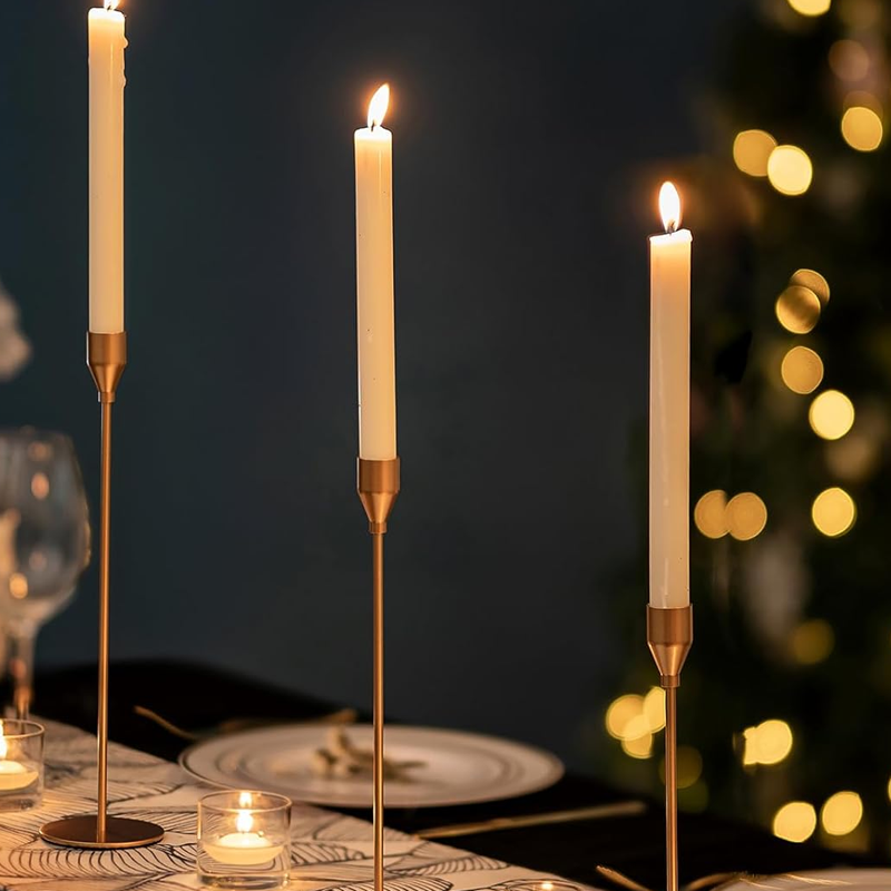 Gold Taper Candle Holders: Tall Candle Holders, Set of 3 Candle Holder Stands, for Dining Table Centerpieces, Wedding Decor